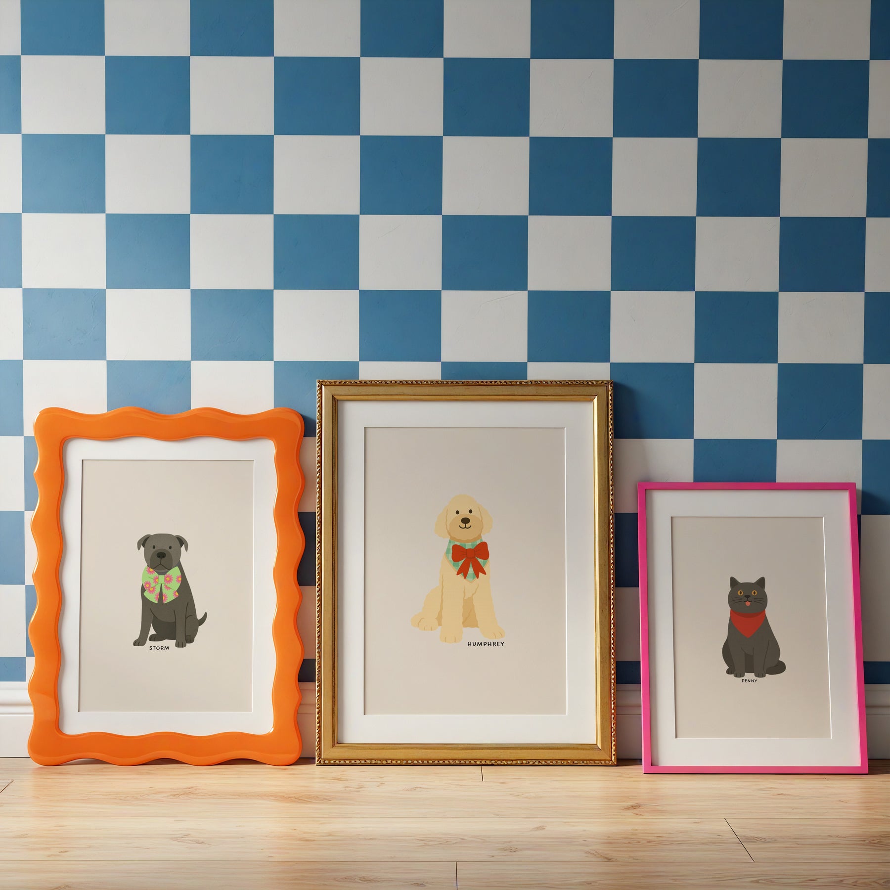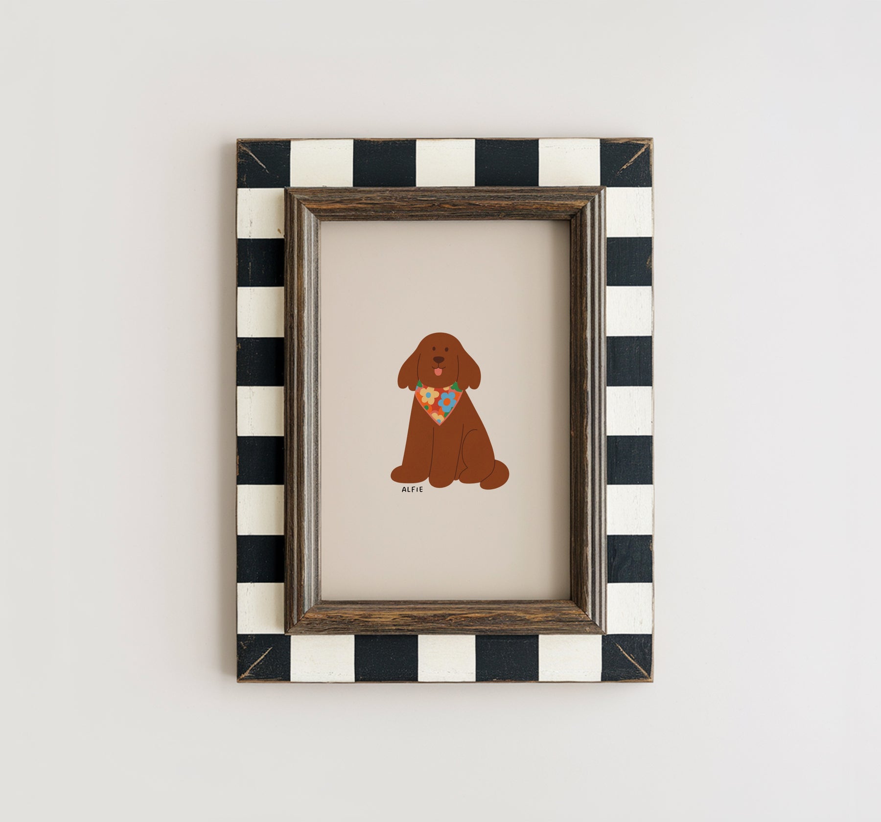 Custom Painted Pet Portrait - Checkered Background